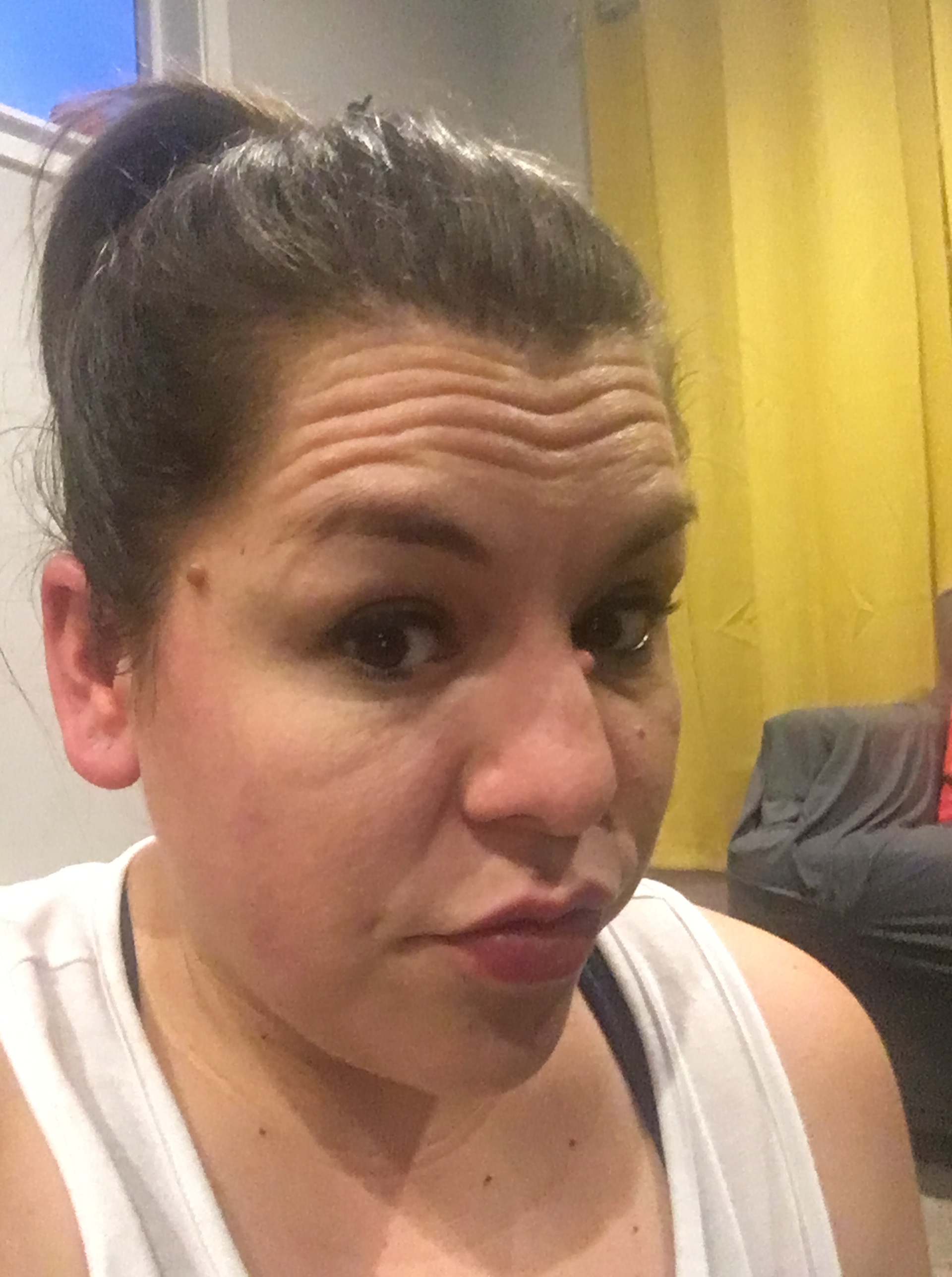 I watched the videos and then I deleted them. They sat in my trashed pics for two days because I HATED EVERY SECOND OF THEM. Brutus had emerged, full force, and was stabbing away. So many more than usual. I don’t feel good looking at this compilation. It makes me ugly sweat and breathe hard. Hell, I’m breathing hard IN IT and I couldn’t figure out how to mute the background. EVERY second of this is agony for me to watch. I had a MAJOR milestone that I shared earlier Monday morning, which was that I had finally, FINALLY, fit into a size 14 pair of jeans and I was over the moon wearing them. This video and my ugly, inner BFF negated all those feelings.
